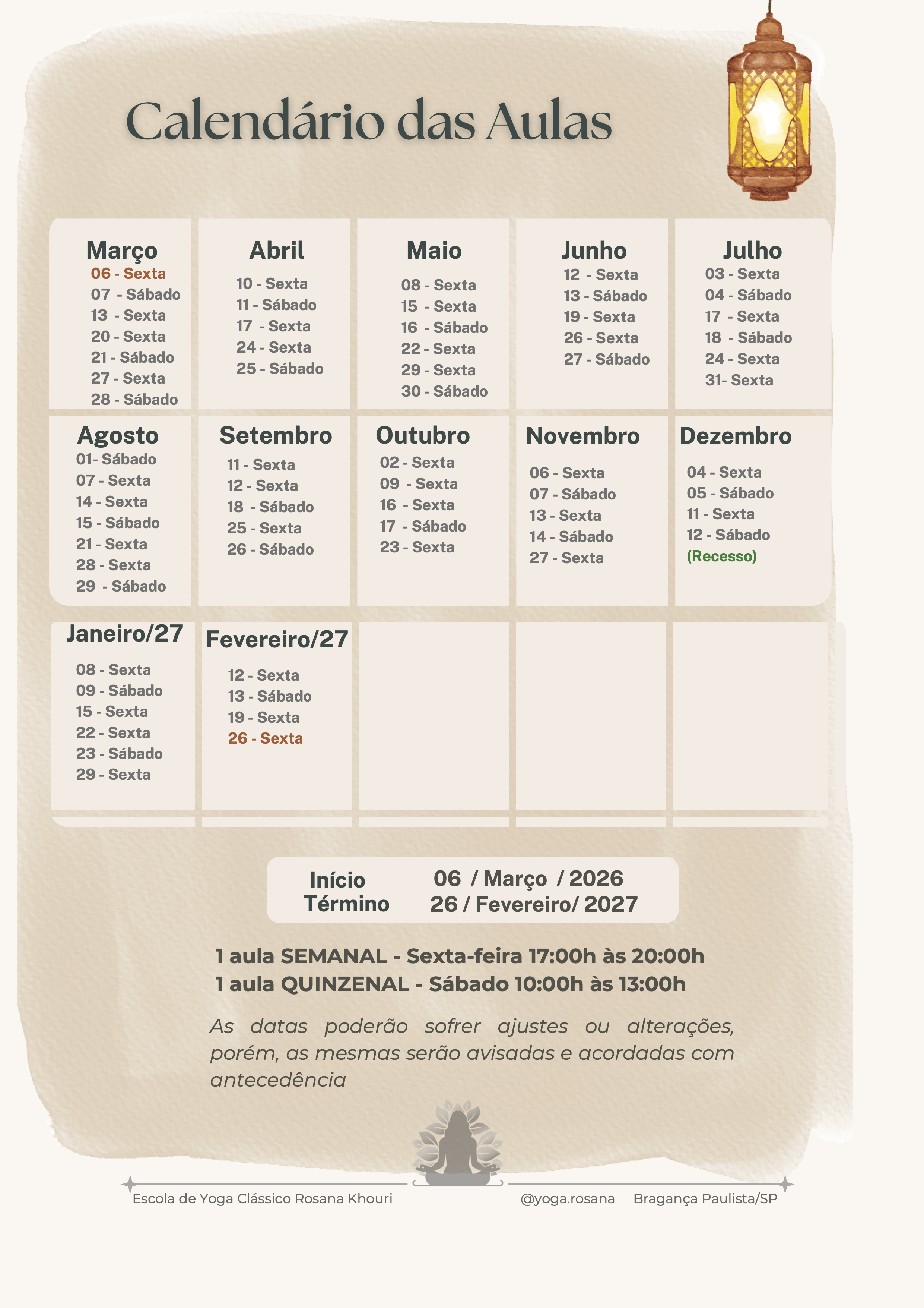Namaskar e Chandra Namaskar; - Os módulos se repetirão somente no próximo ano letivo, assim, não haverá reposição;
