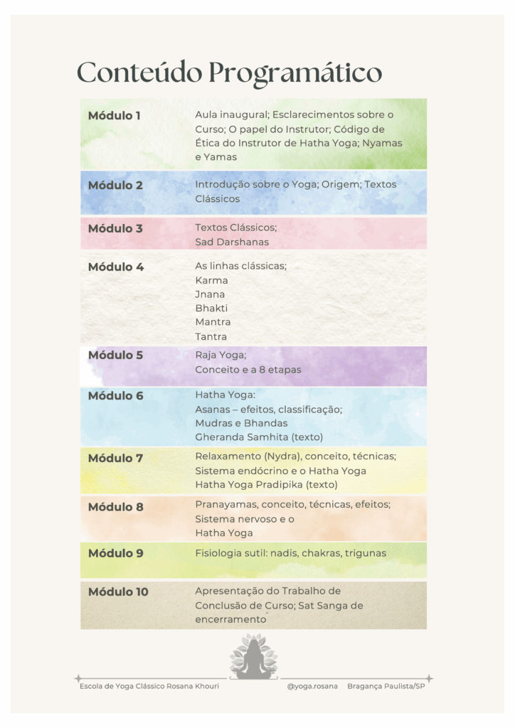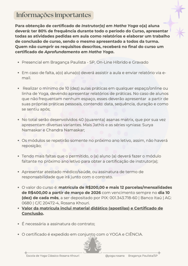 Informações sobre o Curso de Formação de Hatha Yoga de Rosana Khouri